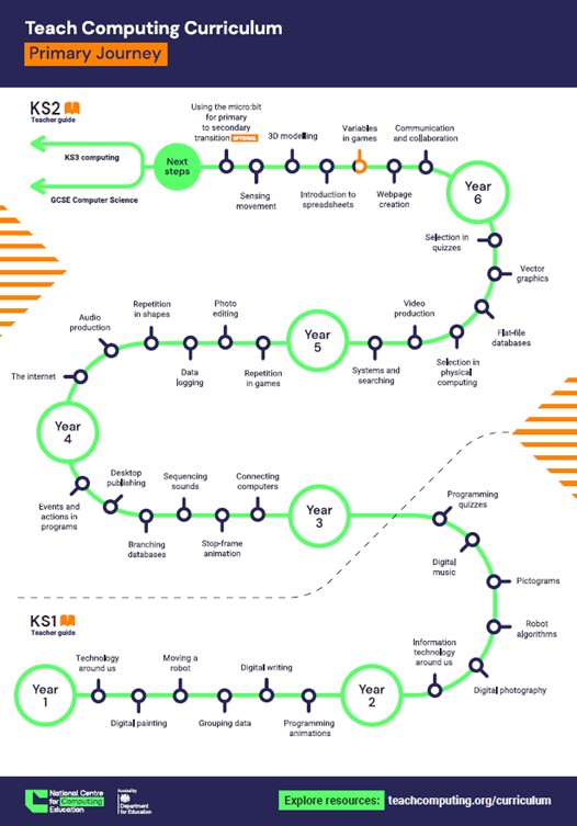Our pupils are designated one lesson of Computing learning a week. We use Teach Computing as a cohesive scheme of work addressing the statutory aspects of the National Curriculum. Computing is branched into three aspects: Computer Science; Information Technology; and Digital Literacy, so that our pupils are set a relevant, challenging continuum of age-related skills and knowledge for their own year groups within Key Stage 2. Pupils will be taught to:
